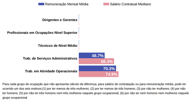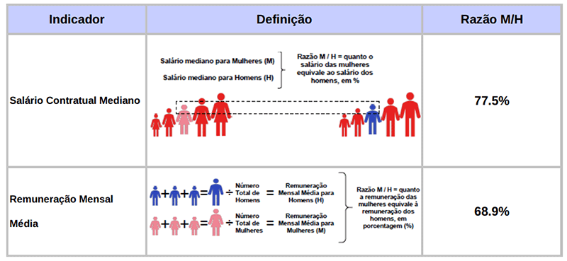 • O salário contratual mediano das mulheres equivale a 77.5% do recebido pelos homens.